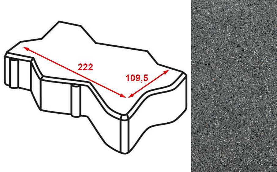 Плитка тротуарная Готика Granite FERRO, зигзаг/волна, Исетский 222x109,5x60 мм